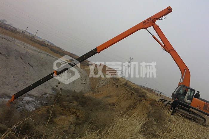 雙壹公司備有多臺長臂挖掘機,15-200米各種長度,一站式解決您的深坑挖掘難題。