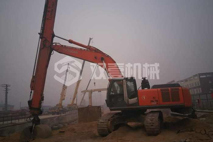 雙壹公司備有多臺長臂挖掘機,15-200米各種長度,一站式解決您的深坑挖掘難題。