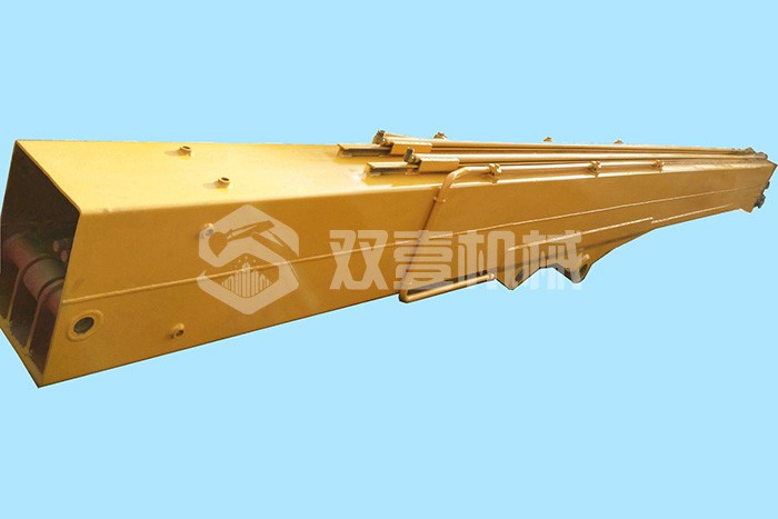 兩節(jié)伸縮臂是雙壹機(jī)械2005年自主研發(fā)的突破性產(chǎn)品,被多家同行模仿制造,從未被超越;臂長度19米,采用高噸位的三機(jī)聯(lián)動(dòng)折彎設(shè)備折成U型,雙U型對接的焊接方式。