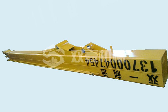 兩節伸縮臂是雙壹機械2005年自主研發的突破性產品,被多家同行模仿制造,從未被超越;臂長度19米,采用高噸位的三機聯動折彎設備折成U型,雙U型對接的焊接方式。