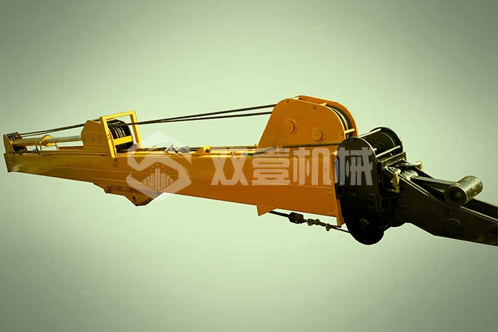 三節臂:25T級挖掘機三節臂可挖深24米,35T級挖掘機三節臂可挖深32米;臂體采用700L或960高強度板材,滑輪安裝結構在臂外部,便于保養維修,結構設計尺寸大,延長使用壽命。