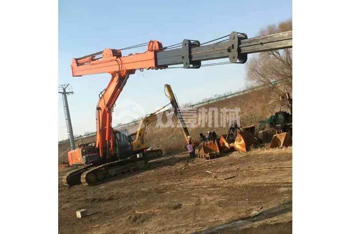 超長四節(jié)臂:總長度可達(dá)48米,臂內(nèi)可再伸出3節(jié),施工深度42.5米,配帶貝殼斗1.8立方或挖掘斗1.0立方。